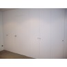 Frente de armario con puertas abatibles lacadas en blanco y con cristal.