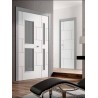 Gama de frentes correderos que combinan cristales y paneles ciegos en una o varias de las puertas que componen el frente del armario empotrado.
