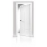 Separación de ambientes, cerramiento de 480cm de ancho y 255cm de alto con do puertas correderas de 120cm de ancho y dos fijos de 120cm de ancho con cuarterones lacados y acristalamiento de espejo. Con montantes superiores ciegos.