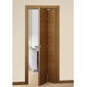 Estas puertas tienen una estética similar a los frentes de armarios, con cerco de aluminio y tableros de melamina, cristal o combinaciones entre ambos acabados.