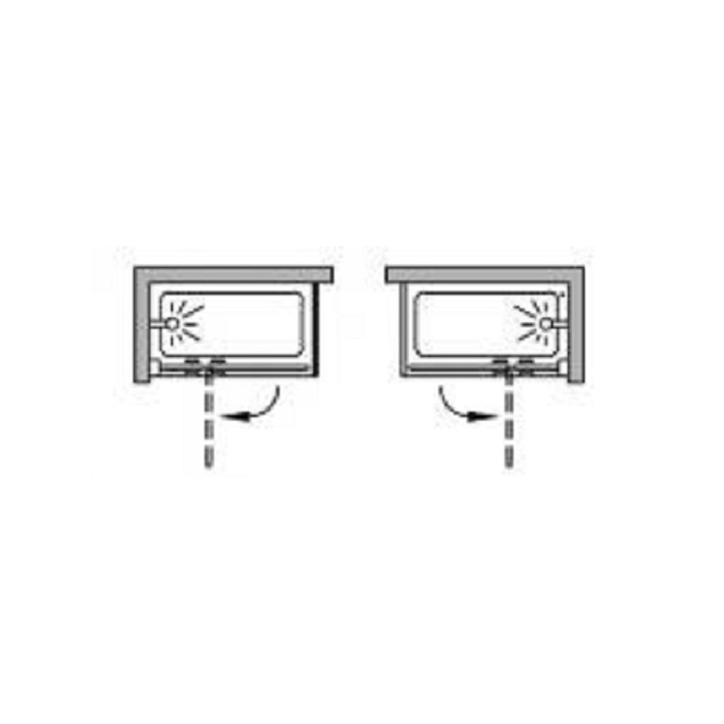 Mampara de ducha con un fijo y una hoja abatible articulada de apertura exterior.