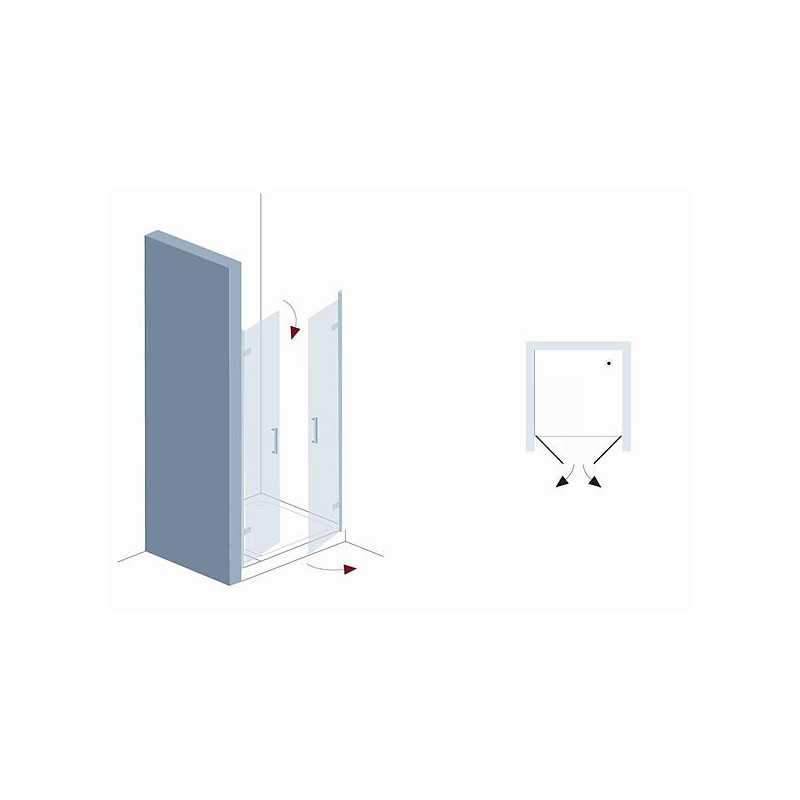 Mampara de ducha de dos hojas abatibles de apertura exterior.