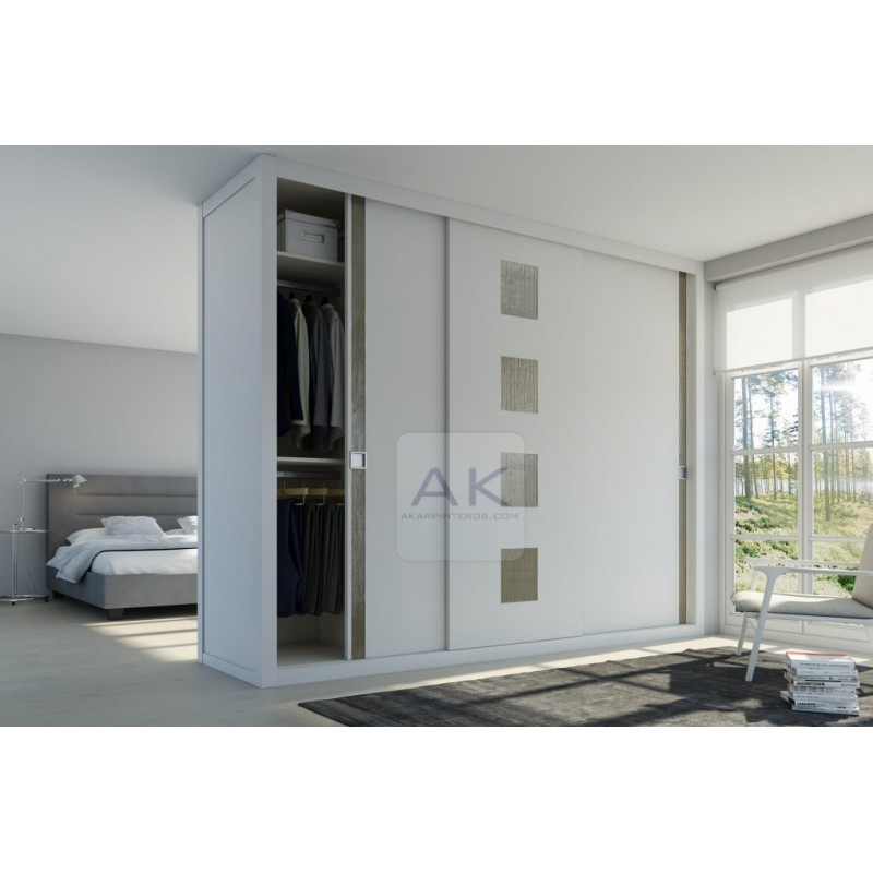 Frente de armario con puertas correderas lacadas en blanco y con cristal.