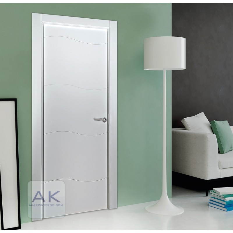 Puerta maciza lacada, fresado pico gorrión o diseño.