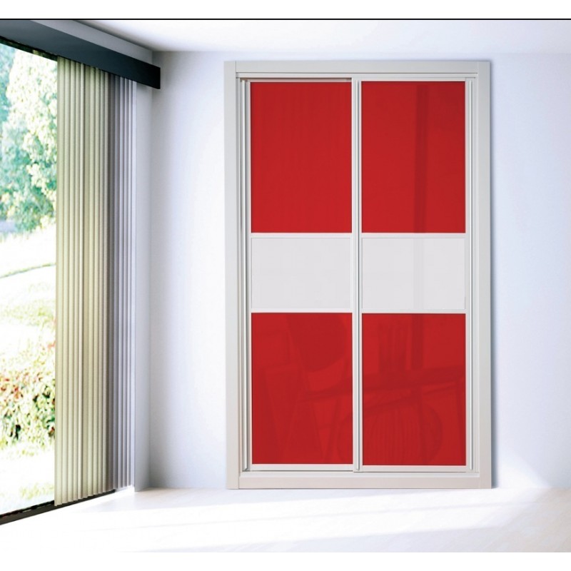 Frente de armario con puertas correderas de cristal.