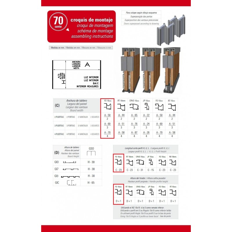 Kit de puerta corredera con tiradores de aluminio, mod. FO16.