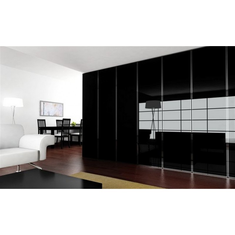 Tablero de fibra recubierto de melamina, con la cara vista lacada en poliéster super brillo efecto espejo.