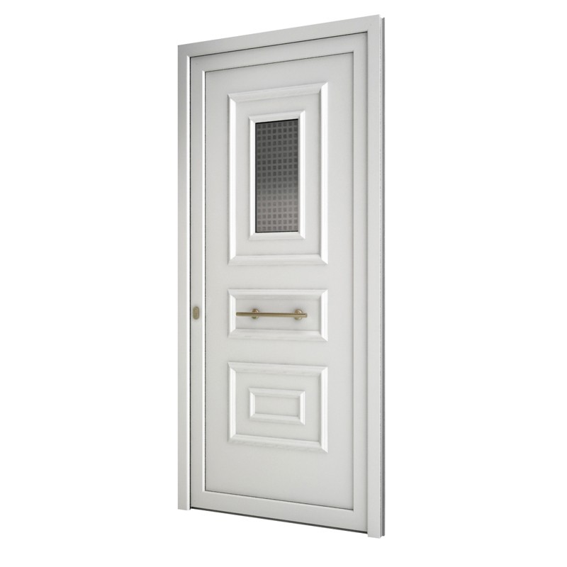 A diferencia de la serie Moldura en la que la moldura va superpuesta en la T, el diseño se logra aplicando calor a una plancha de PVC manteniendo intactas sus valores de resistencia y aislamiento. El resultado sin juntas, de formas suaves y agradables al tacto facilita la limpieza de la puerta.